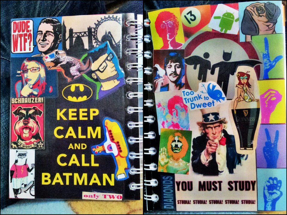 Puedes pegarle lo que quieras, lo que tengas por casa, crea tu composición y haz que tu agenda sea única. A la basura con esas precocinadas, a menos que sean de las del Carrefour que traen la portada de Hannah Montana, ahí me quito el sombrero.