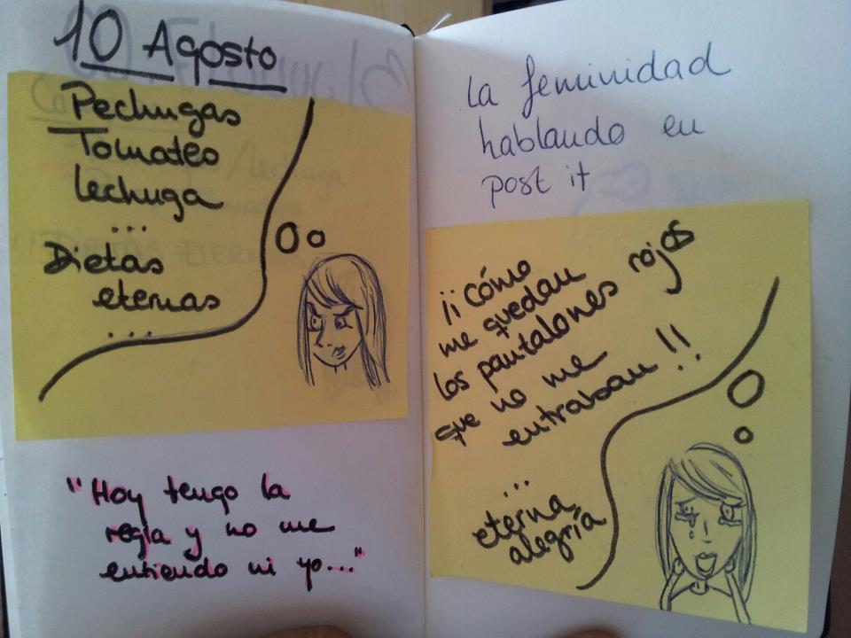 Yo soy de dibujar, escribir, anotar, tachar y comerme las hojas con el pincho de la tarde si me apuras. Se me acaban las libretas rápido y por ello, decidí que era un chorrada invertir casi 20 euros en una Moleskine cuando ahora los chinos las tienen por 2 euros, o en mi caso, me las regalan en el curro. Así que… He creado la mía. Todavía la estoy usando porque como me gusta tanto, quiero hacerlo bien. (esto es como las relaciones con los chicos que te importan de verdad).