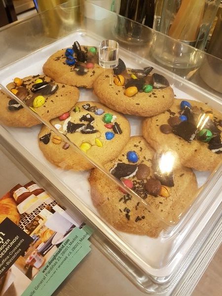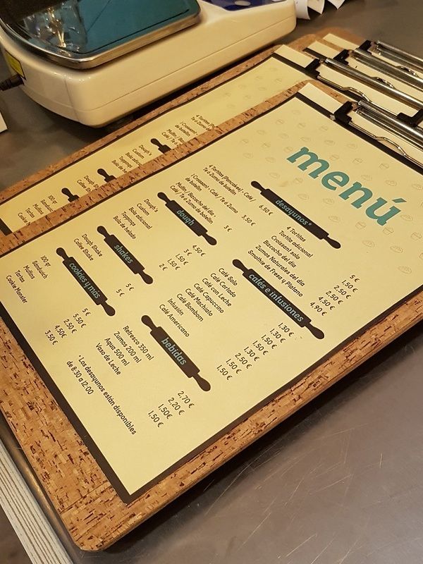 La cafetería en sí no es diferente de otros locales por el barrio Salamanca: cuqui (que no cookie jojojo) e instagrameable a partes iguales. De tamaño no es muy grande: 3 o 4 mesas pequeñitas, unos puffs en el suelo y una barra muy curiosa cubierta de césped artificial que aparece en alguna de las fotos. Fue una suerte encontrar sitio para sentarnos en hora punta, además justo en la barra de césped.
