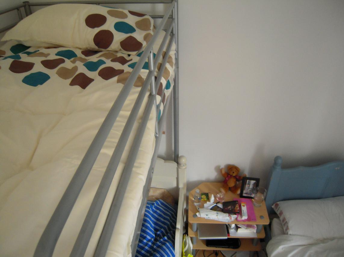 Si la habitación está en la 2º planta, yo duermo en la 3º! no he visto una litera más alta que donde voy a pasar las noches… madre mía! (Nórdico, almohada y funda comprada en el ASDA)