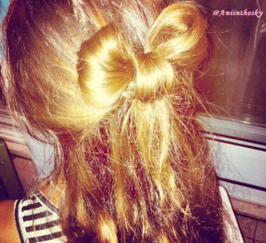 2º ¿Sabes eso de las orejas del conejito que enseñaban de pequeño? Pues eso no vale, es mejor hacer la lazada típica, a ver cómo me explico, la que es doblando un extremo, rodeando este con el cordón (pelo en este caso) del otro y sacándolo hasta que queda el lacito. Tal que así: