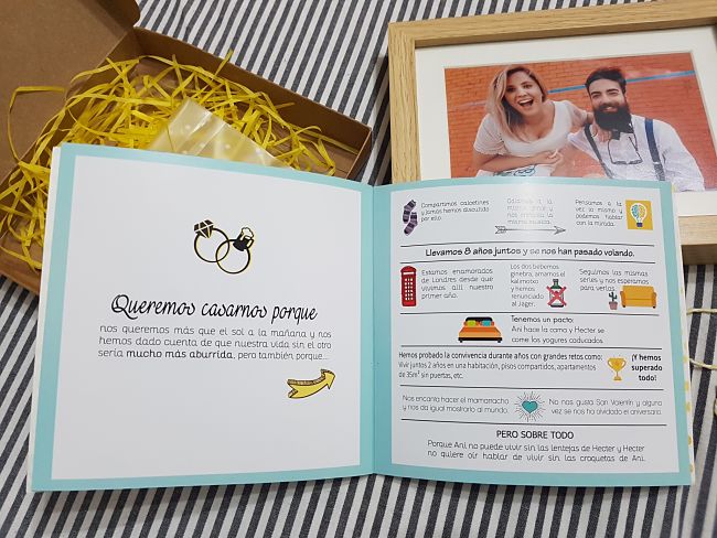 Os dejamos la unas fotos donde podéis ver todo mejor. Obviamente hemos borrado los datos personales pero ahí queda la idea por si queréis inspiraros en ella para vuestras invitaciones de boda: