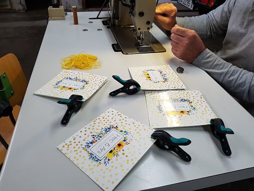 En la copistería nos dieron todas las páginas cortadas «a lo bruto«. Y digo esto porque no era una imprenta grande por lo que la maquinaria que tienen es menos fina. La idea que teníamos era coser cada librito y que luego ellos nos los cuadraran, pero no hizo falta. Hecter, cutter en mano y pijama en cuerpo, se dedicó a cortar cada esquina y a dejarlas preciosas.