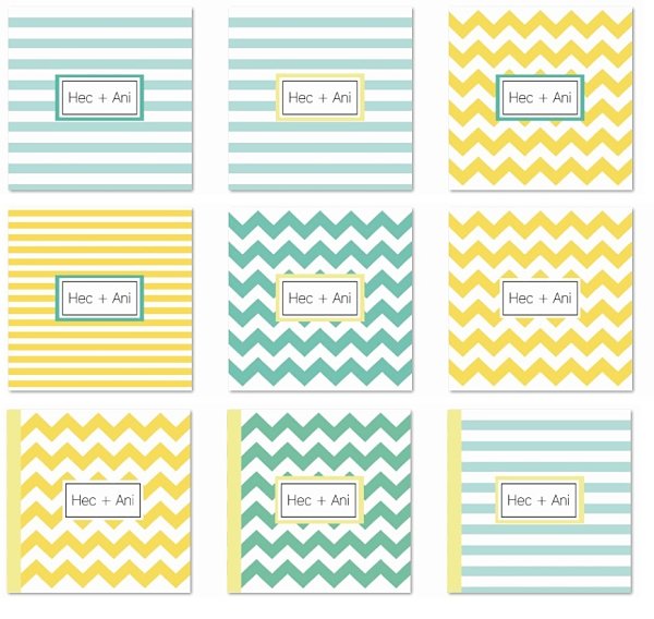 Antes de decidirnos por las flores hubo un tiempo en el que pensamos en hacer la invitación mucho más minimalista. Aunque descartamos algunos diseños porque nos parecían muy de primera comunión o fiesta de cumpleaños, ojo a esa fina línea. Finalmente, ganó uno de los que lleva el zigzag en amarillo. Ganó con peros, porque había una espinita en el corazón de Ani.
