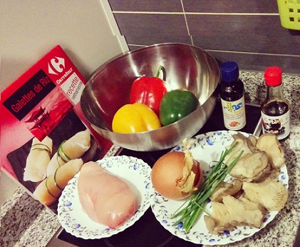Si lees el título del post puedes pensar que me he venido muy arriba y que he puesto un nombre guay a un plato normal, pero no. La receta lo peta y es tal cual, un wok con verduras, seta y pollo teriyaki, además todo en una tortita de arroz, perfecto para dejar a cualquier invitado con la boca abierta… Buenihmooo!