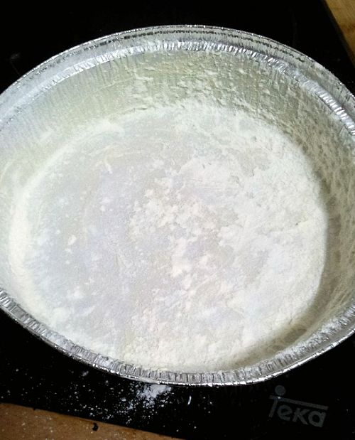 9º Llenamos como hasta la mitad el molde con la mezcla y lo metemos en el horno precalentado a 180º unos 50 minutos. Cada horno tiene sus cosas, así que es bueno ir mirando la tarta a partir de los 35 minutos. Si la capa de arriba está oscura, meted un cuchillo o palito de brocheta para ver cómo está el interior. Si sale húmedo pero lo de arriba está tostado, poned un papel de aluminio por encima y a seguir cocinando.